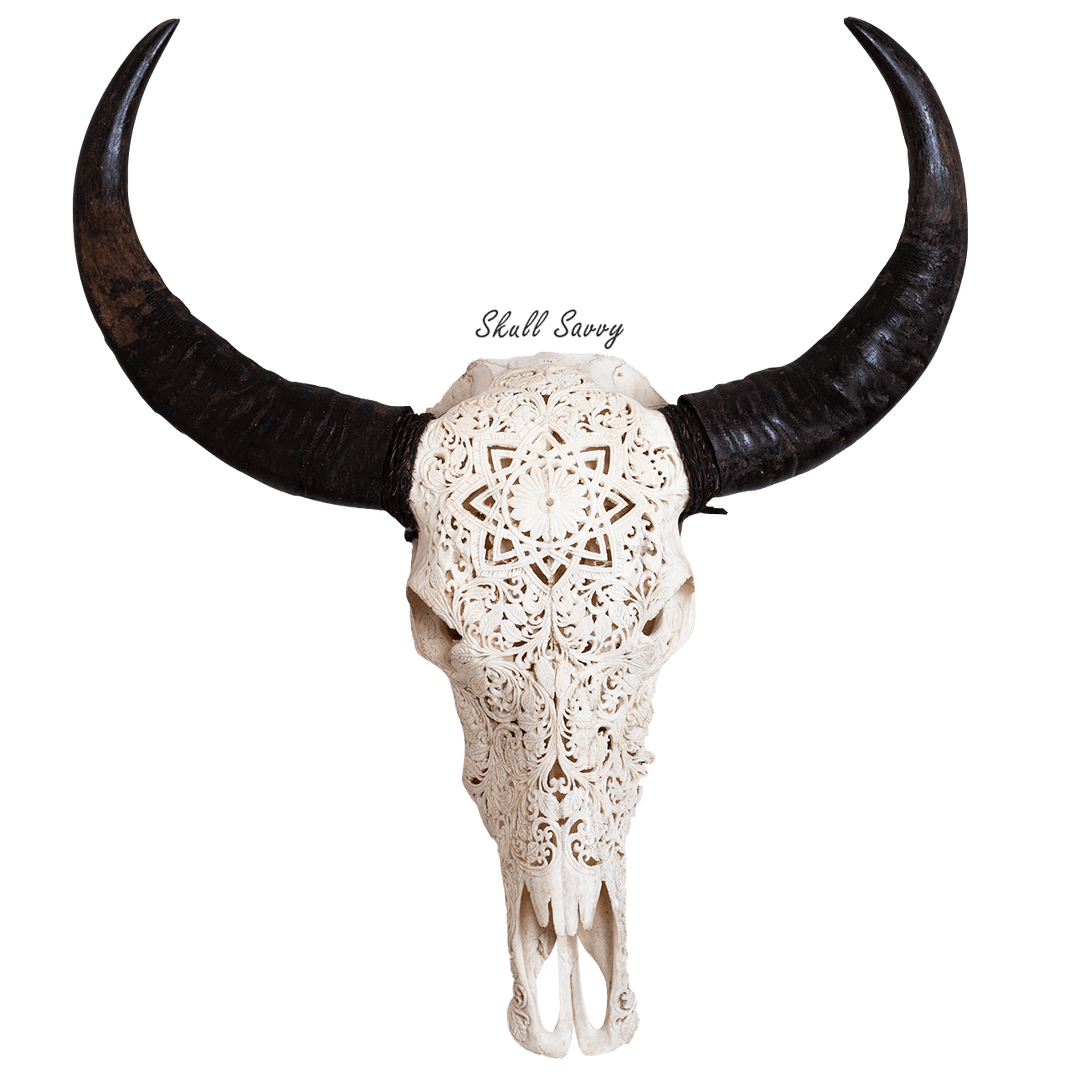 According to some beliefs, a buffalo symbolizes strength, stability, and prosperity. At Skull Savvy, we have an extensive collection of buffalo skulls for sale hand-crafted by native Balinese artists.
