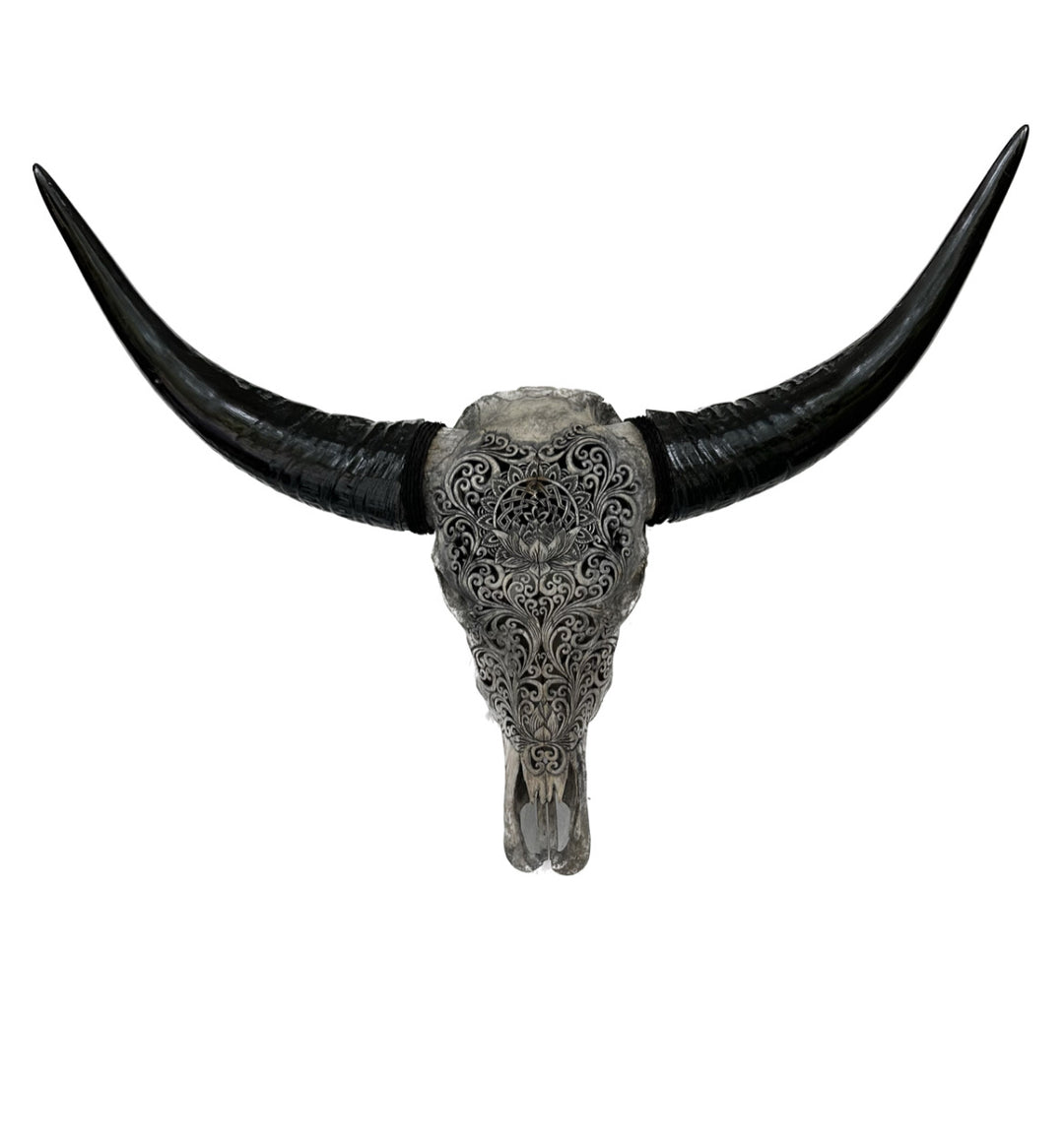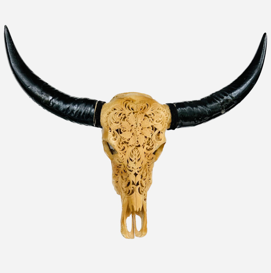 It is said that a true artisan takes decades to master the art of hand crafting a skull. So if you are tired of the monotonous and repetitive machine-sculpted designs you can come to us at Skull Savvy. We will provide you with hand carved bull skulls that are sculpted individually using traditional hand tools. The tools like chisels, files and ring and dot tool, help ensure the delicacy of the skull and perfect the patterns.
